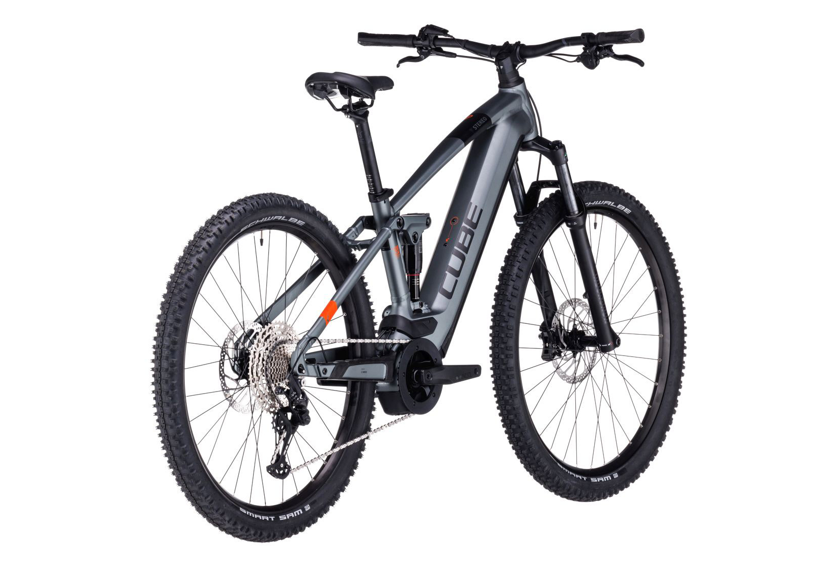 Le Cube Stereo Hybrid 120 Pro combine efficacement système de suspension confortable et absorbant de manière optimale les irrégularités du terrain, pilotage intuitif et fiable, et performances ultimes. Son unité motrice Bosch CX quatrième génération et sa batterie haute capacité s’associent à la célèbre transmission Shimano Deore 12 vitesses pour une puissance tout-terrain naturelle. Ce modèle est équipé de freins à disque hydrauliques à quatre pistons avec disques surdimensionnés à l’avant et à l’arrière pour un freinage sécurisé, quelles que soient les conditions. Ses pneus Schwalbe Smart Sam de 2,6 pouces très adhérents apportent un surplus de confort et de contrôle, tandis que sa suspension RockShox à l’avant et à l’arrière permet aux roues de rester en parfait contact avec le sol pour une plus grande roulabilité. Voilà tout ce dont vous avez besoin pour des aventures tout-terrain.
