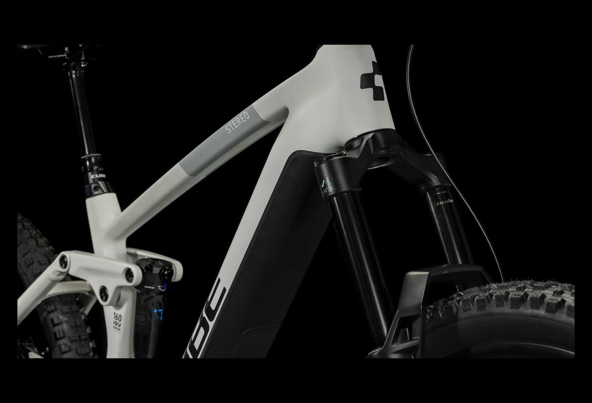 Un vélo taillé pour l’enduro avec la puissance Bosch ? Et oui, c’est possible. Le cadre principal en carbone C:62 du Cube Stereo Hybrid 160 HPC a été conçu pour loger le Modular Battery System (y compris une batterie pouvant aller jusqu’à 750 Wh) et son unité motrice Bosch quatrième génération, dans une gamme de tailles adaptées à presque n’importe quel pilote. La commodité, c’est la clé : il dispose ainsi de suffisamment de place pour un porte-bidon, et le capot de la batterie dispose d’un bouton poussoir. Les ingénieurs de la marque ont incorporé à l’avant une géométrie inspirée de la compétition, un axe arrière Boost 148 et un tube de direction de 1,5 pouces pour des choix de trajectoires tendues à la demande, même sur les chemins les plus accidentés. Avec son support d’amortisseur Trunnion, ses roulements de biellette surdimensionnés et son passage interne de câbles, vous avez la garantie de contraintes d’entretien réduites et d’un maximum de plaisir sur les sentiers.