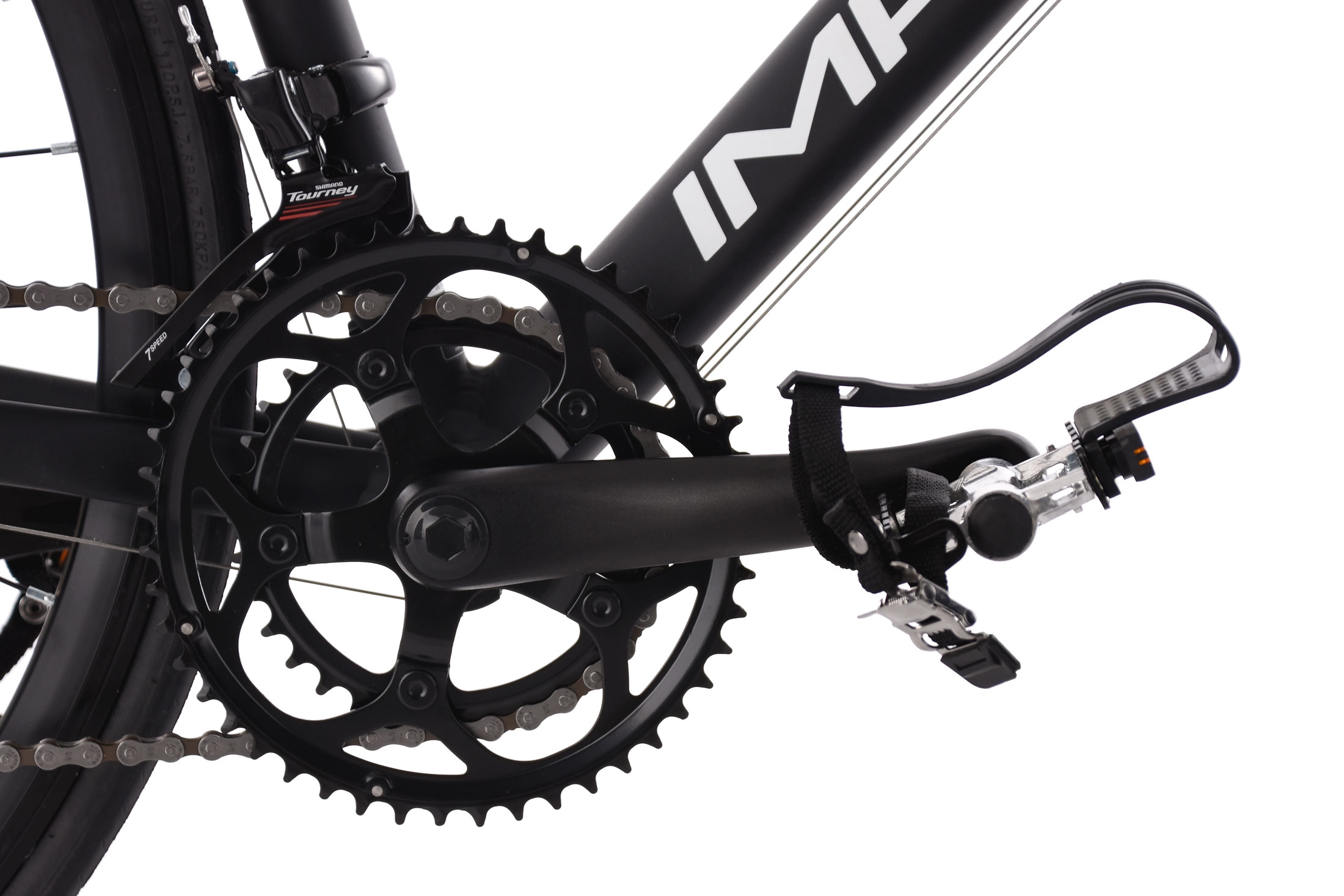 - Pédales: Aluminium/acier avec cale-pied et lanière